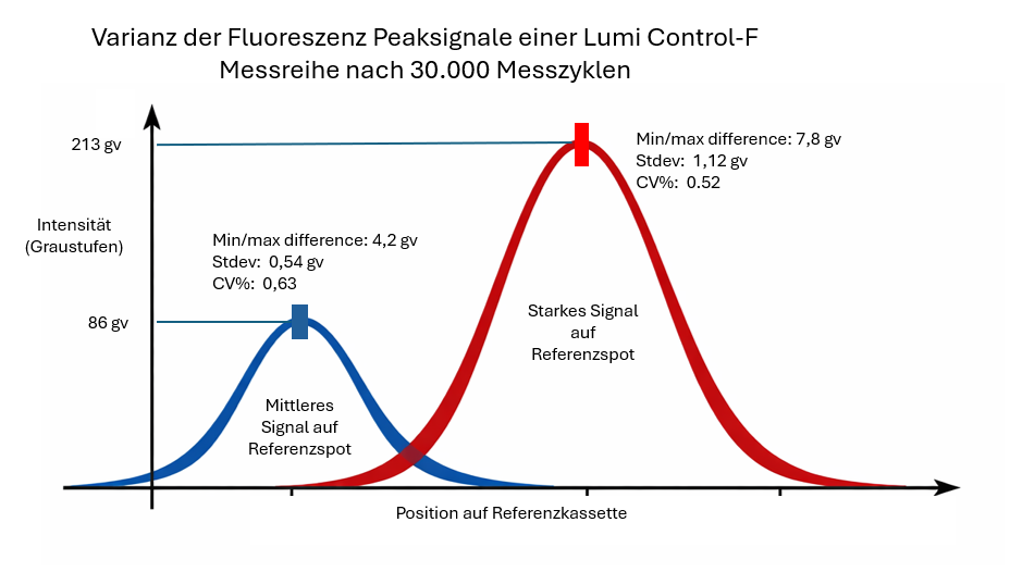 Lumi Control-F: eine fluoreszenzbasierte Referenz zur Überprüfung der relativen Reaktion auf die Intensität der Fluoreszenzemission.