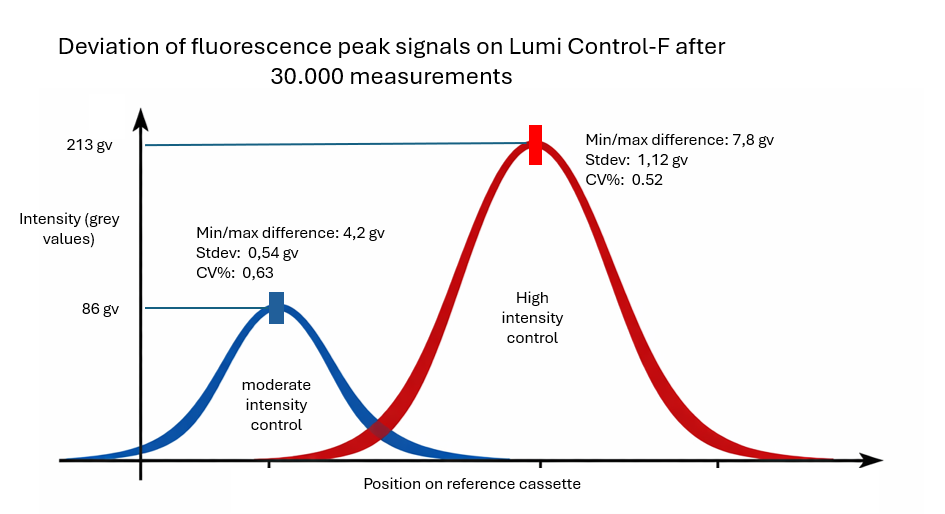 Both versions provide a highly stable optical response over years of use, enabling users to reliably detect even small changes in device sensitivity. Lumi Control tools are not absolute calibration standards; instead, they serve as robust and repeatable relative references for production monitoring and long-term performance verification.